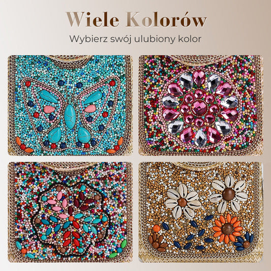 Boho Chic Mała Słomiana Torebka z Koralikami