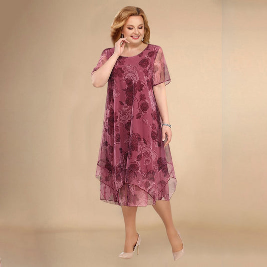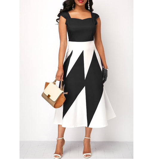 Plus Size Okrągły Dekolt Okrągły Dekolt Patchwork Cekinowa Sukienka