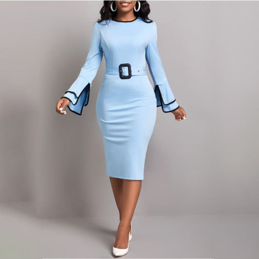 W promocjiTaliowana jasnoniebieska sukienka