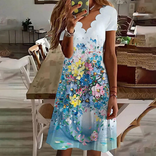 Seksowna damska sukienka z krótkimi rękawami i dekoltem w serek
