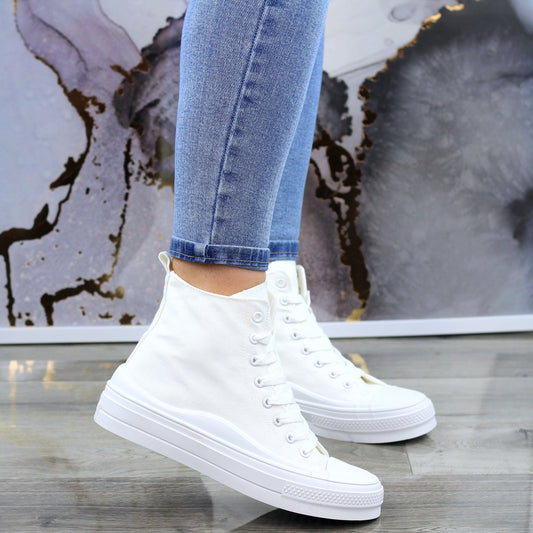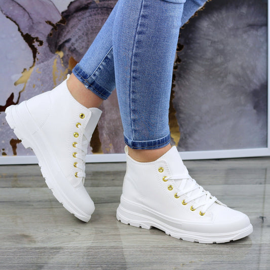 W promocjiBIAŁE WYŻSZE SZNUROWANE TRAMPKI DAMSKIE STAR