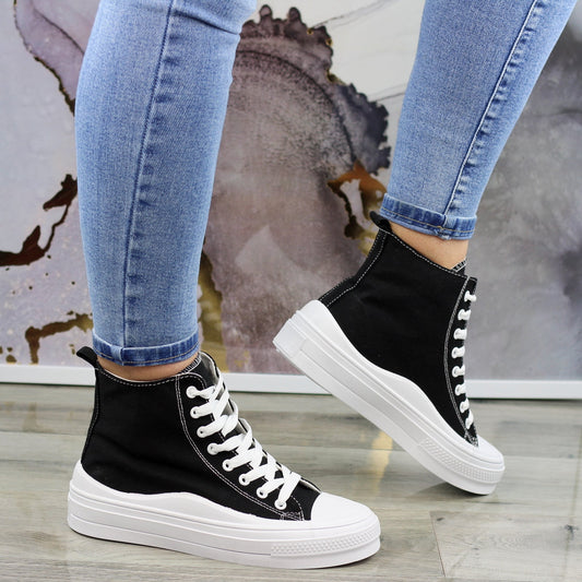 W promocjiCZARNE TRAMPKI DAMSKIE NA GRUBEJ PODESZWIE