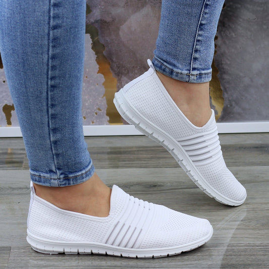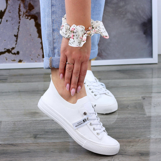 Miękkie, wygodne białe tenisówki elastyczne trampki damskie