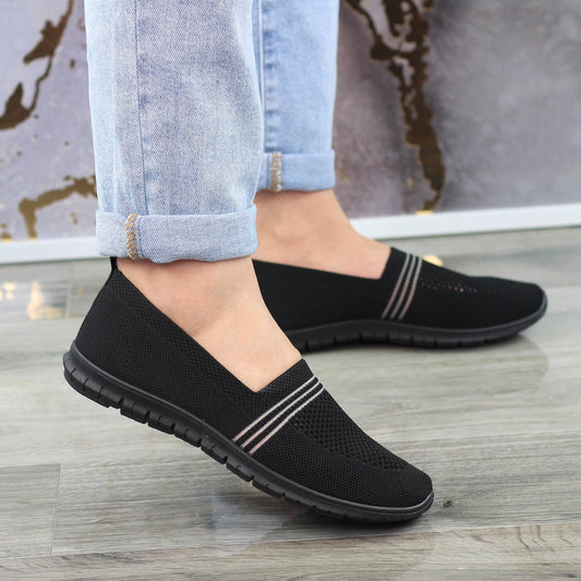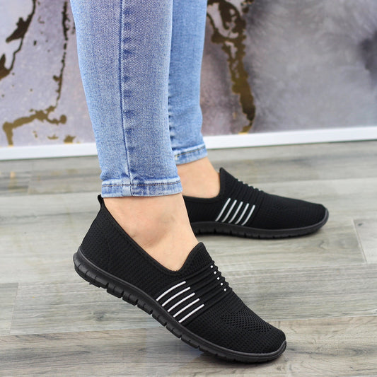 Miękkie, wygodne czarne tenisówki elastyczne trampki damskie
