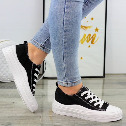 CZARNE ELASTYCZNE TENISÓWKI TRAMPKI DAMSKIE MINIS