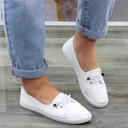 BIAŁE MATERIAŁOWE WYCIĘTE TENISÓWKI BALERINKI DAMSKIE NA LATO