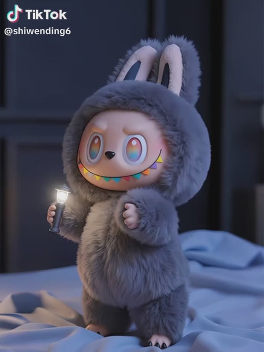Trzy generacje pluszowych zabawek w pudełku niespodziance.