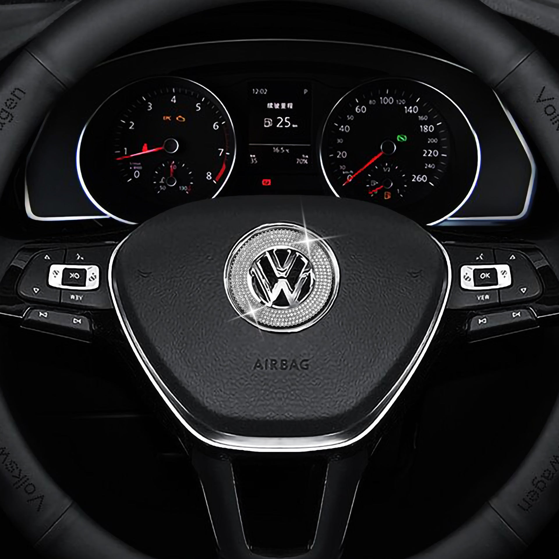 Kierownica ozdobiona jest naklejkami w kształcie diamentów, które pasują do oryginalnego samochodu, błyszczą uroczo, są łatwe w montażu i prezentują się wyjątkowo
