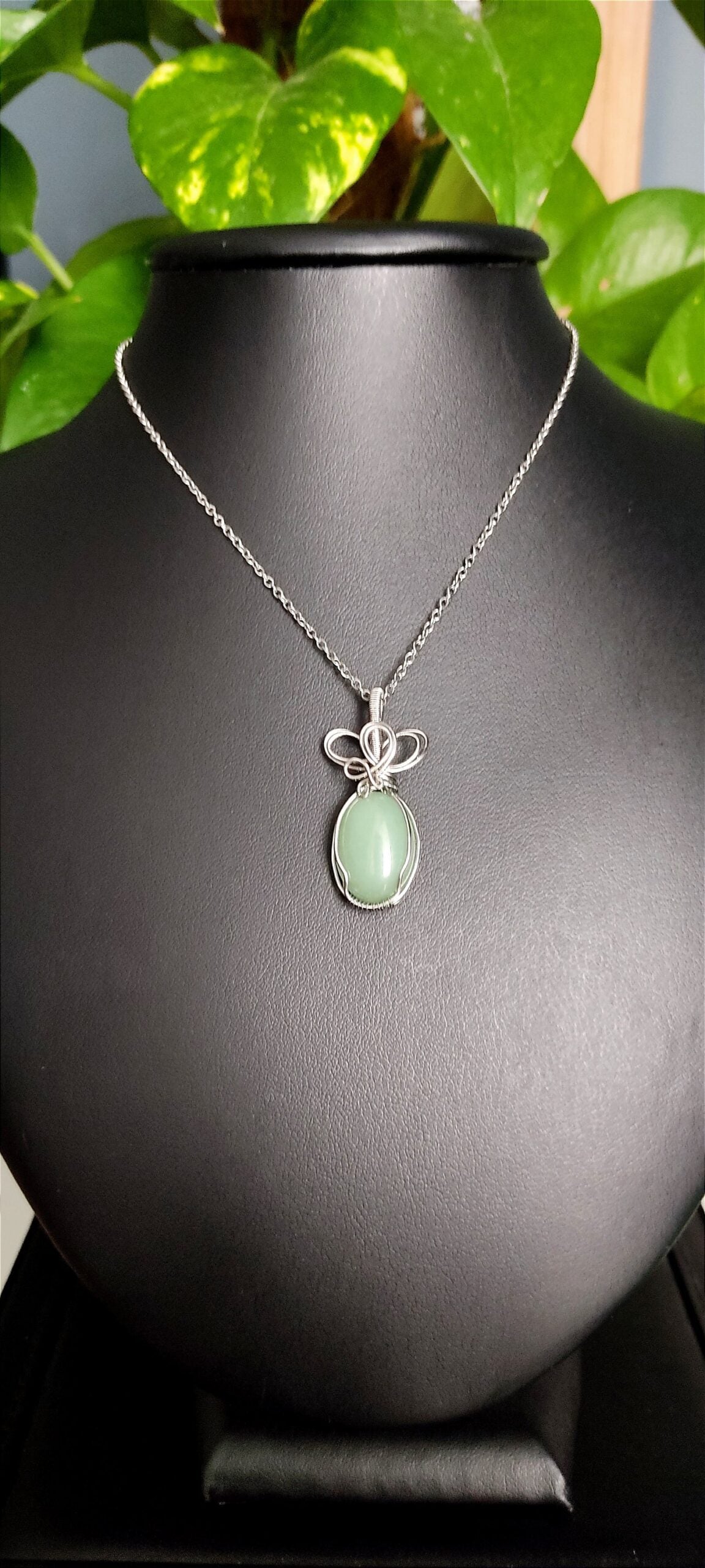 Ręcznie robiony wisiorek z awenturynem. Wykonany techniką wire wrapping z drutów ze stali chirurgicznej.