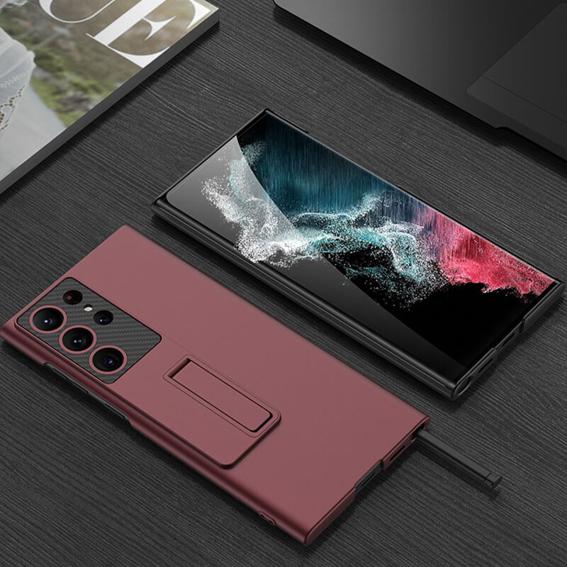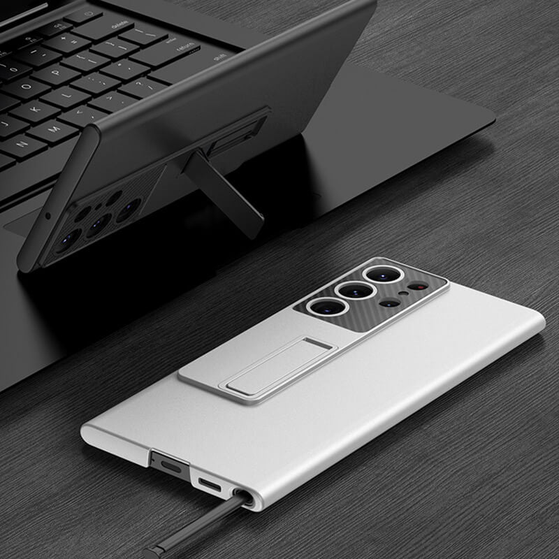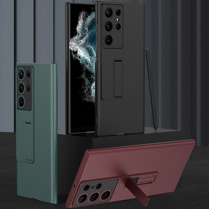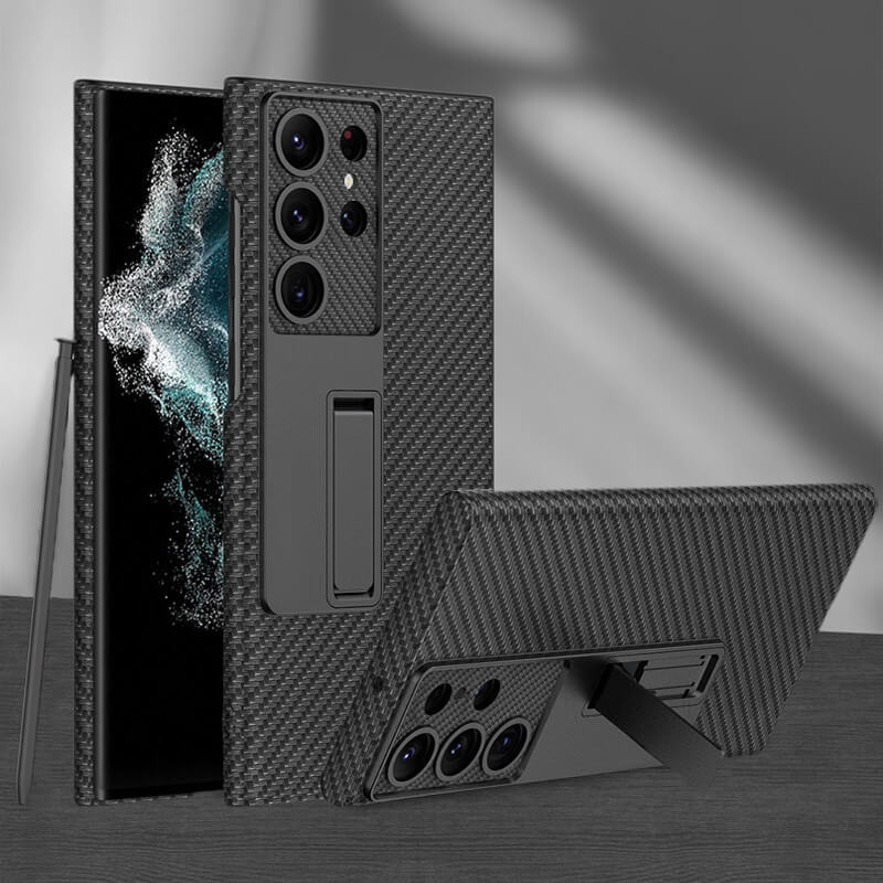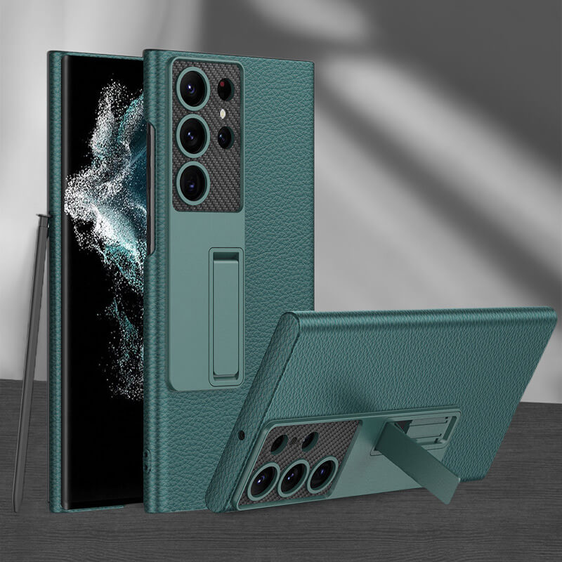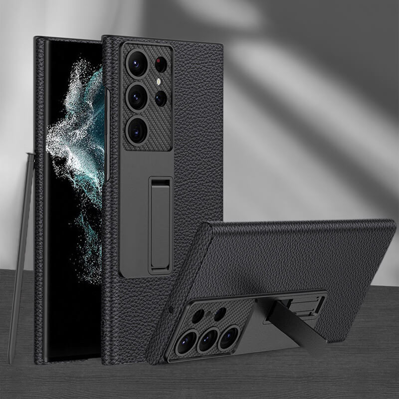 Invisible Bracket Leather Phone Case for Samsung Galaxy S22 S23 Ultra Plus