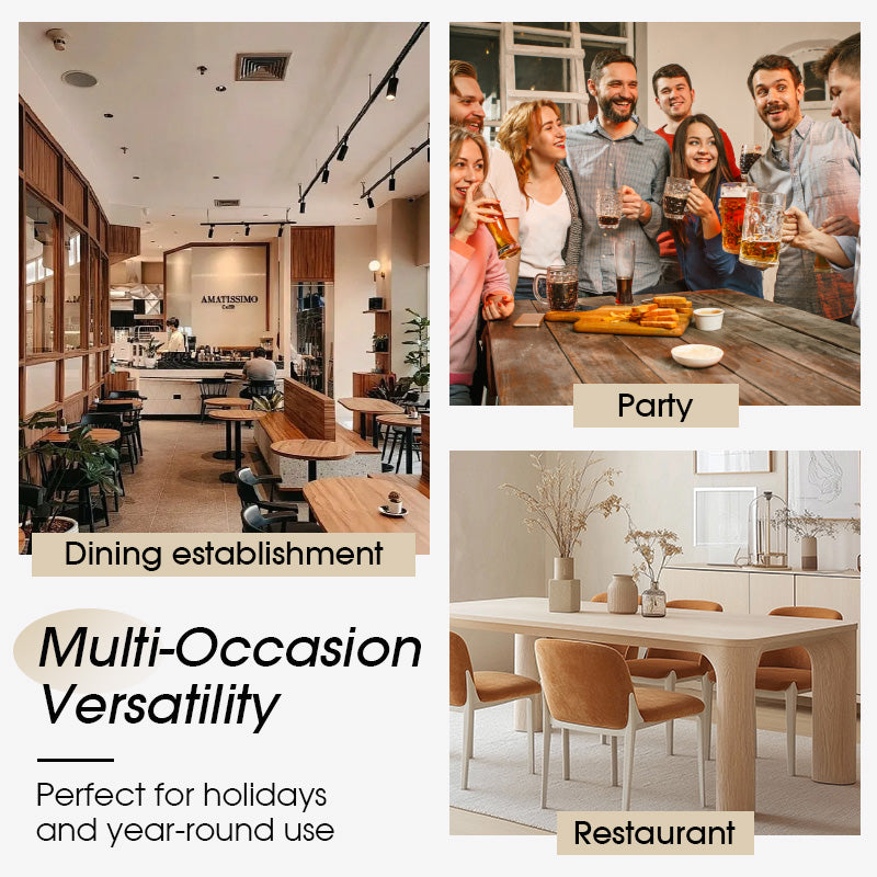 MIĘKKI W DOTYKU, TRWAŁY – Luksusowo gładki, a jednocześnie wystarczająco wytrzymały, aby wytrzymać rozlanie i małe rączki. Wystarczy przetrzeć, a w kilka sekund będzie gotowy do ponownego użycia – bez szorowania i stresu. Będzie wyglądał jak nowy przez lata, jakby co roku świętowano Boże Narodzenie.