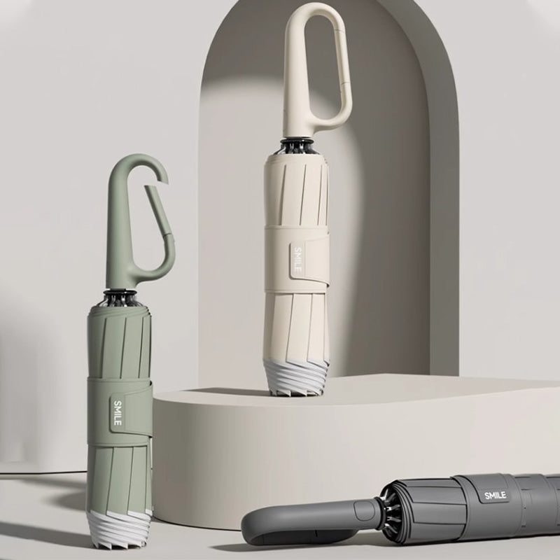 ROZKŁADANY PARASOL – Parasol z odblaskowym paskiem bezpieczeństwa zapinanym na klamrę jest wyposażony w mechanizm odwrotnego rozkładania, ułatwiający otwieranie i zamykanie. W przeciwieństwie do tradycyjnych parasoli, ta innowacyjna konstrukcja pozwala na złożenie parasola do wewnątrz, chroniąc mokrą powierzchnię przed wilgocią.