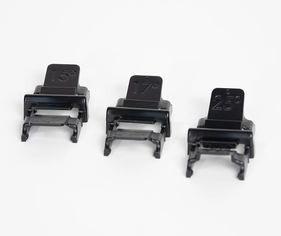 • Oczekująca na patent prowadnica kątowa utrzymuje  dokładne kąty 20° (15°/17°/25°)