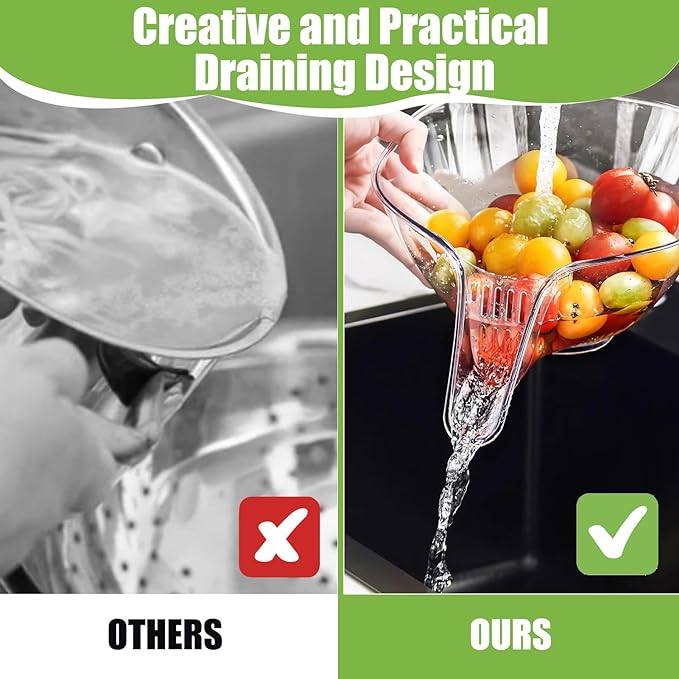 - Wielofunkcyjny i praktyczny: ten kosz do odcedzania nie jest przeznaczony tylko do makaronu; jest idealny do płukania owoców i warzyw, odcedzania makaronu, ziemniaków, brokułów, zielonych liści, konserw i nie tylko. Służy jako sitko, narzędzie do mycia i płukania, a nawet może być używany jako pojemnik na żywność i urządzenie do robienia sałatek.