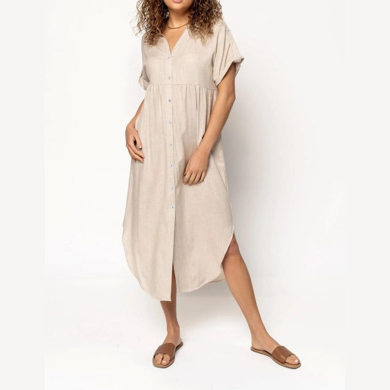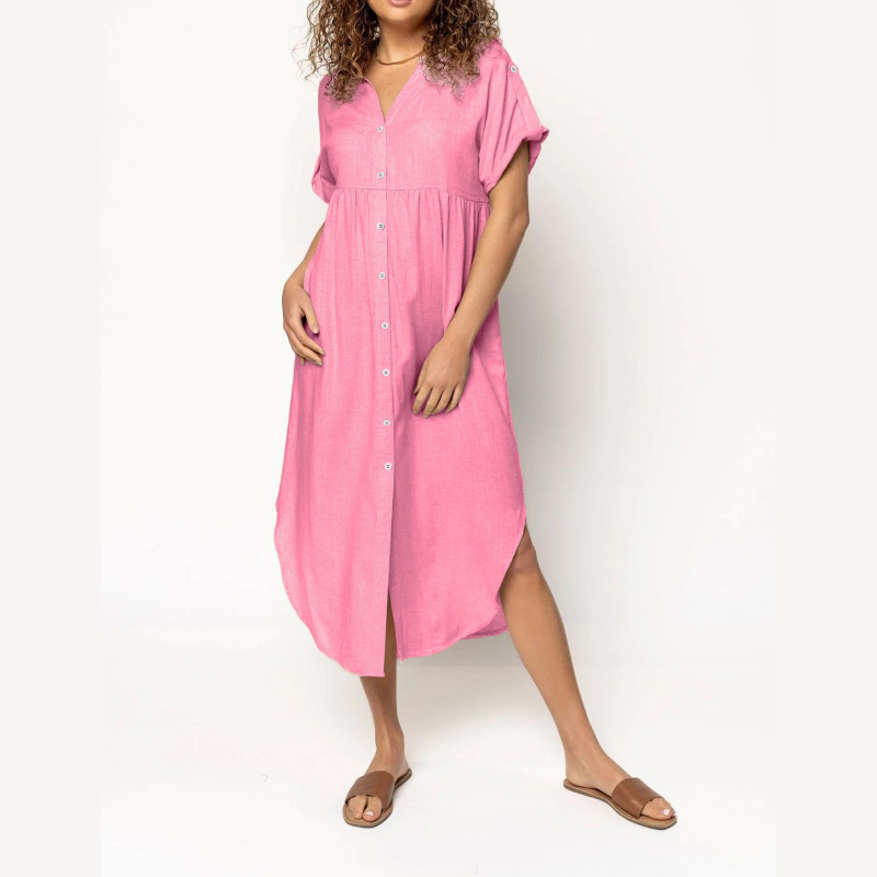 Damskie sukienki koszulowe z krótkim rękawem z guzikami