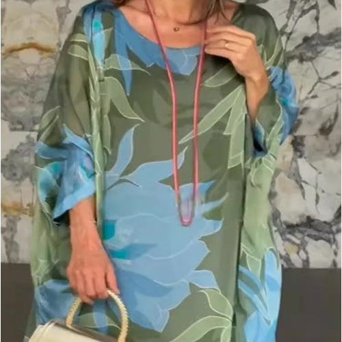 Damskie sukienki z okrągłym dekoltem i długim rękawem w kwiaty