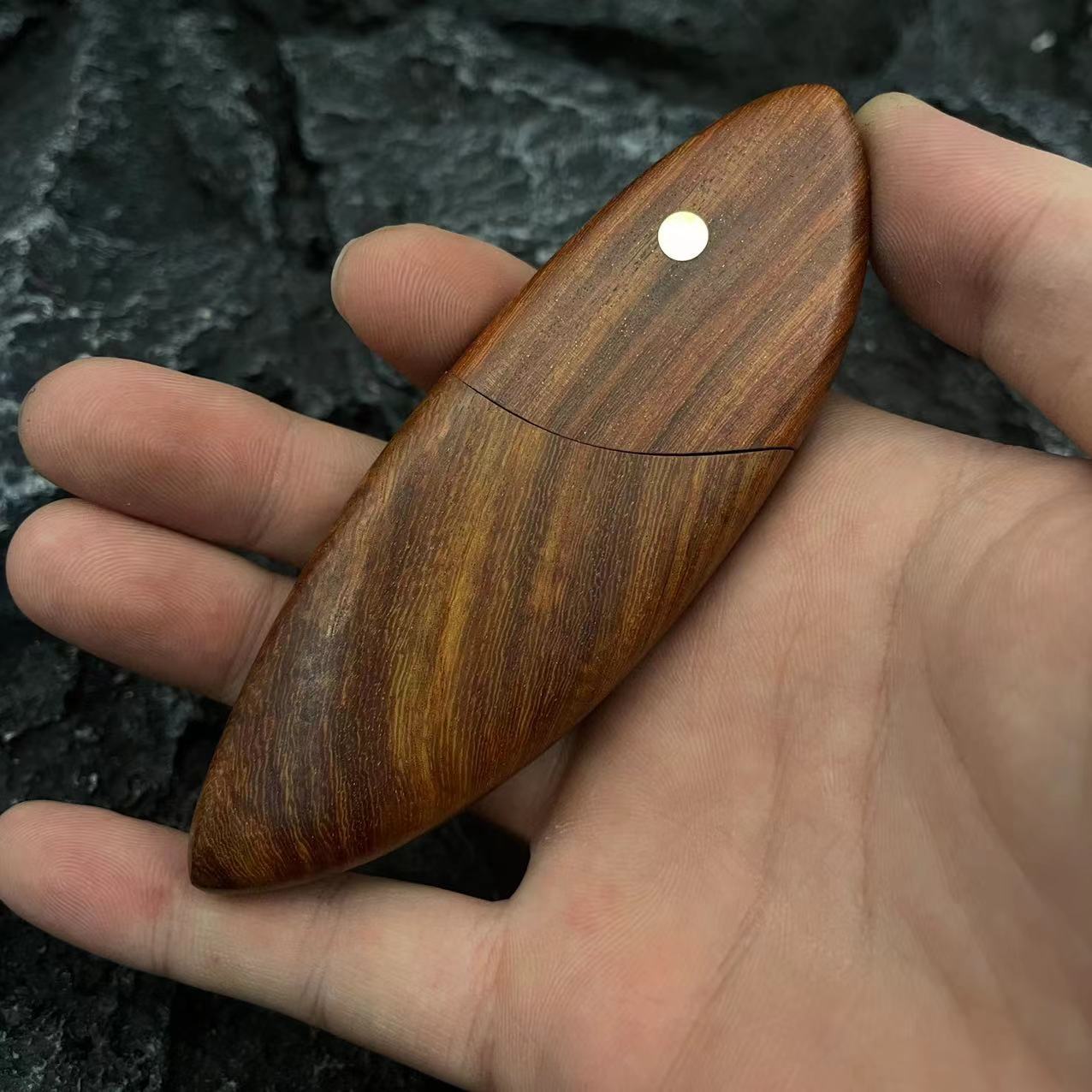 Ten wykonany w całości ze stali przenośny mini scyzoryk kempingowy do samoobrony jest bardzo charakterystycznym narzędziem do użytku w terenie. Jego unikalną cechą jest idealne zachodzenie na siebie pochwy i ostrza noża, co przekształca się w piękną drewnianą kostkę. Ostrze można idealnie ukryć w drewnianym klocku, dzięki czemu jest niezwykle wygodne w przenoszeniu i nie zajmuje dodatkowej przestrzeni.