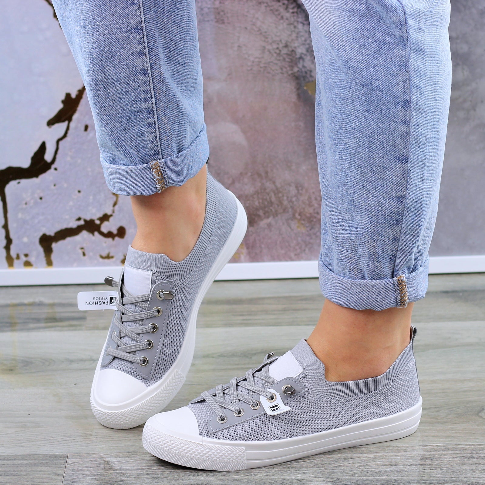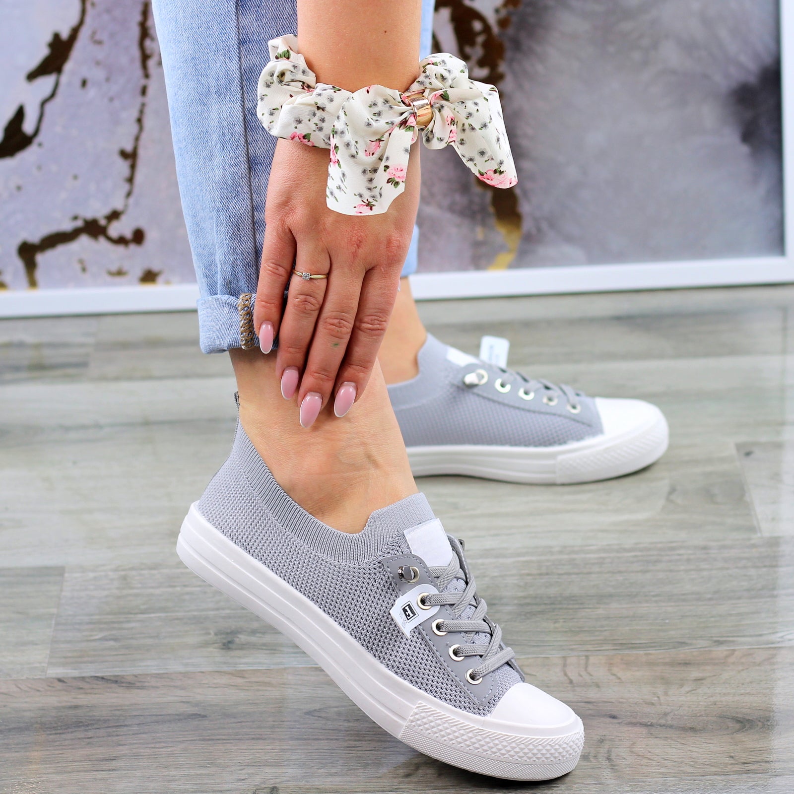 Szare trampki mięciutkie sznurowane slim na wygodnej podeszwie wykonane z mięciutkiej elastycznej tkaniny.