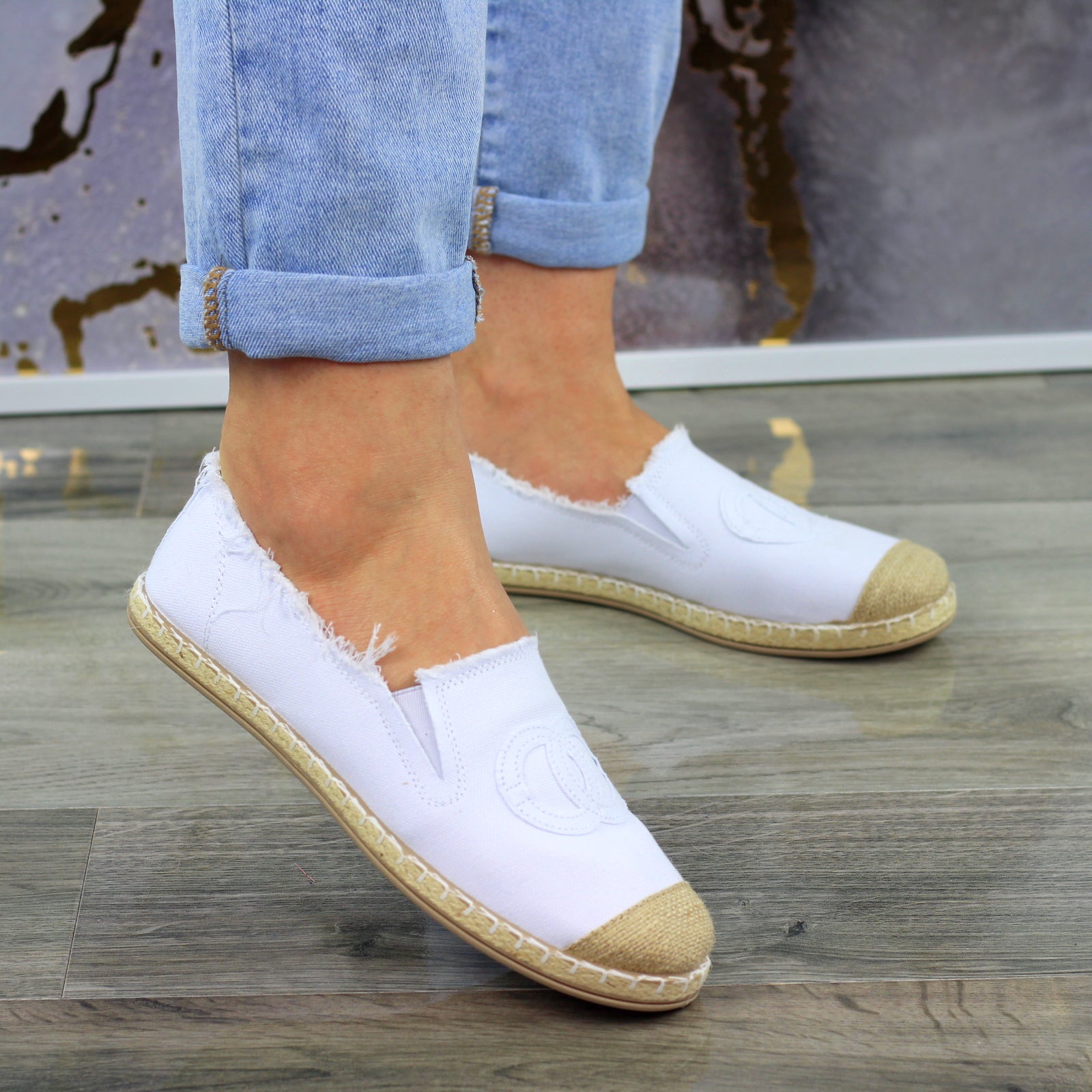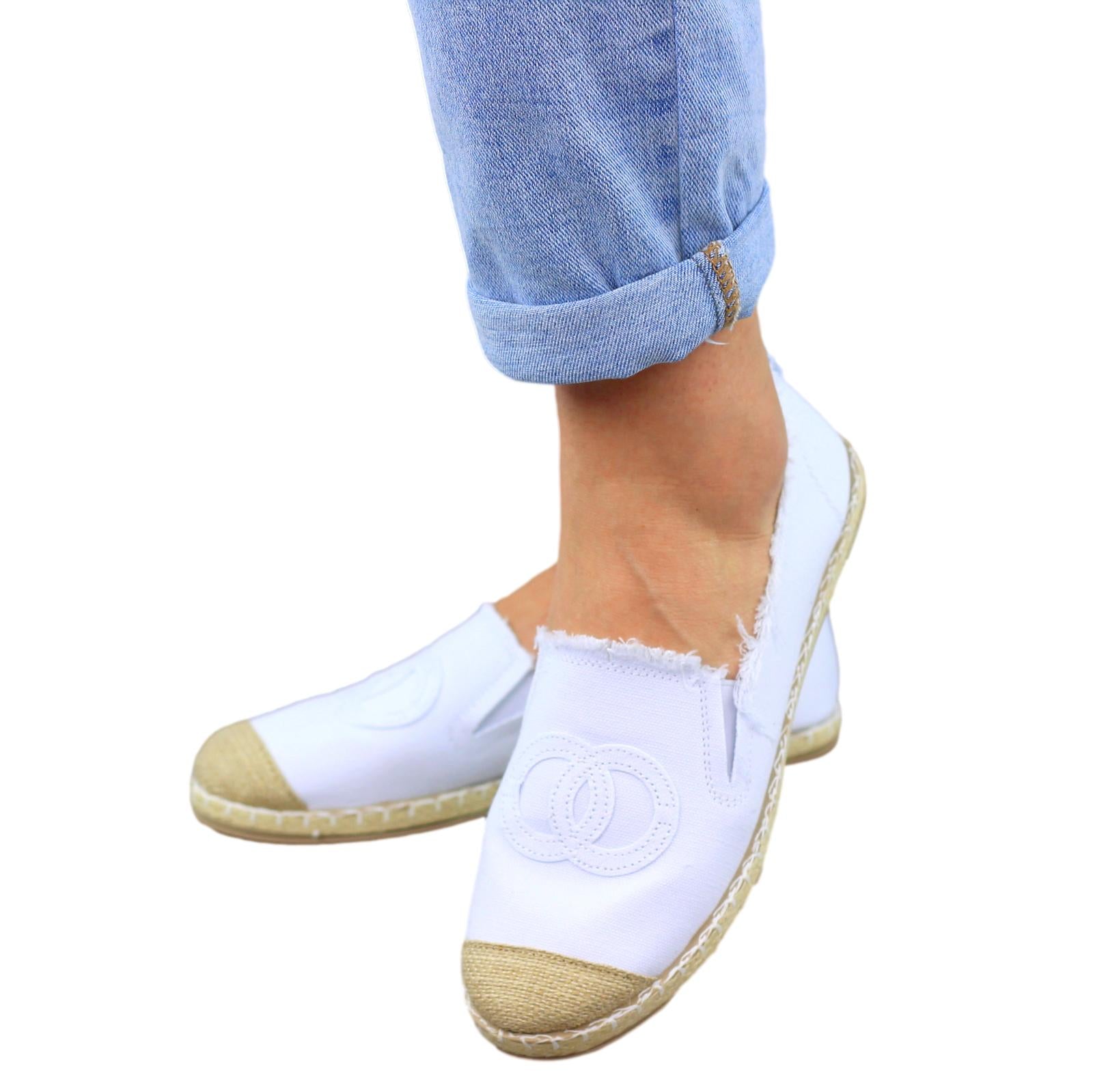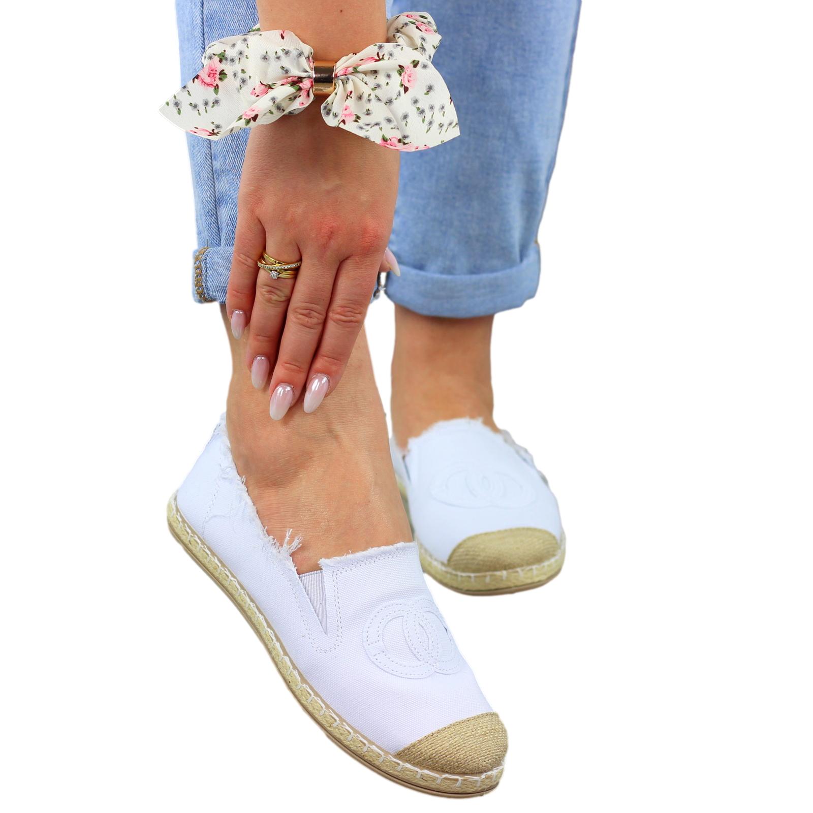 Białe płaskie espadryle damskie z logowaniem
