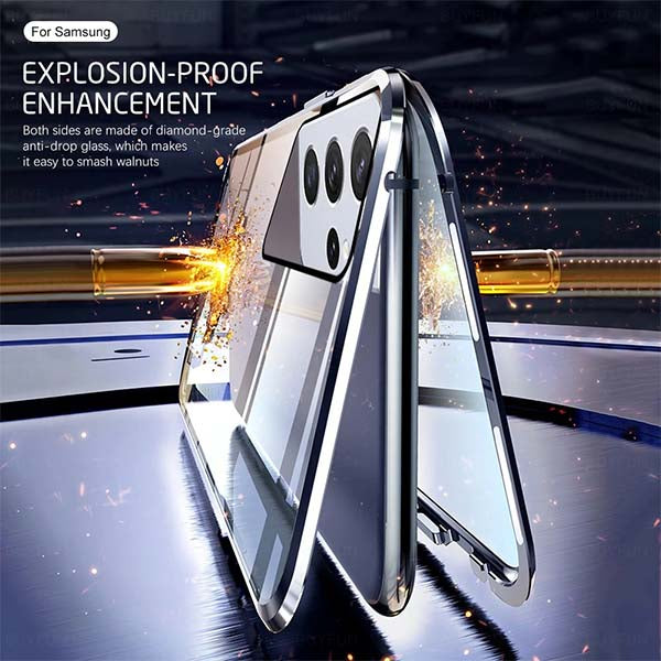 Magnetyczne dwustronne szklane etui na telefon S22 Ultra. Masz dość przypadkowego upuszczania smartfona i powodowania uszkodzeń?