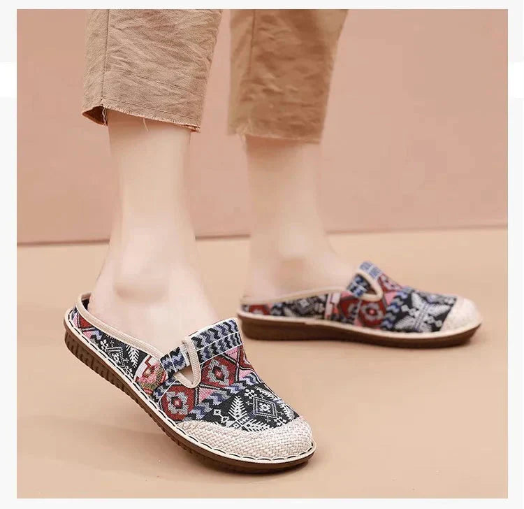 Jest to para codziennych butów wykonanych z bawełny i lnu. Cholewka wykonana jest z bawełny i lnu, dzięki czemu jest przewiewna i wygodna w codziennym noszeniu. Obcas butów jest krótszy, dzięki czemu łatwiej je zakładać i zdejmować. Wzór na cholewce jest kolorowy i ma etniczny charakter, co dodaje butom modnego charakteru. Podeszwa jest miękka i zapewnia dobre wsparcie i wygodę podczas dłuższego chodzenia. Te buty nie tylko ładnie wyglądają, ale i są bardzo praktyczne, idealne do codziennych podróży.