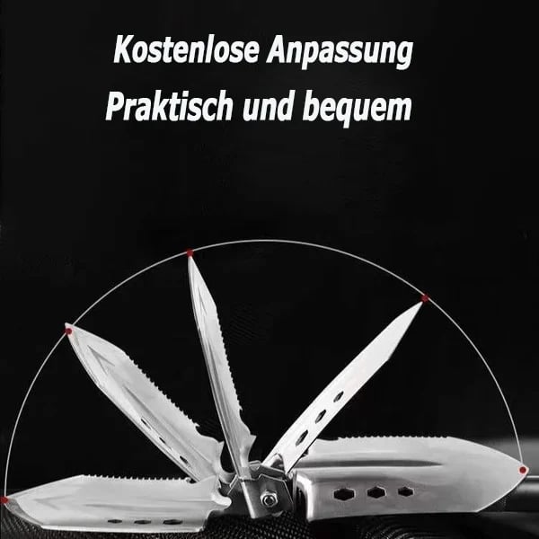 Łopata wielofunkcyjna z wieloma funkcjami - Uniwersalne funkcje łopaty: kopanie, kopanie, rozdrabnianie, piłowanie, otwieranie, osłanianie, wieszanie, podnoszenie, cięcie, zrzucanie, młotkowanie, wyciąganie gwoździ itp. Cóż za wszechstronność narzędzie dla każdego Miłośników outdooru! Ta uniwersalna łopata może być również używana jako łopata taktyczna. Jest to przenośna składana łopata wojskowa z ostrą łopatą, regulowanymi uchwytami i torbą do przenoszenia. Do codziennego użytku ta łopata może być również używana jako łopata ogrodowa, łopata do śniegu i łopata do rowów.