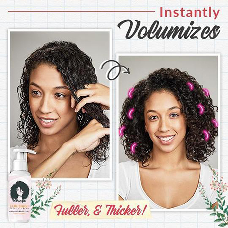 - 【Bouncy Curlie】:Wystarczy nałożyć na suche lub mokre włosy, aby zdefiniować i utrzymać loki na miejscu przez cały dzień. Odbij, nawodnij i reaktywuj suche loki po długim nocnym odpoczynku - bez szamponu!