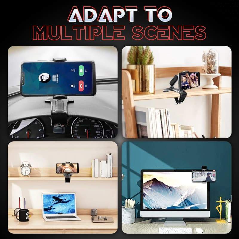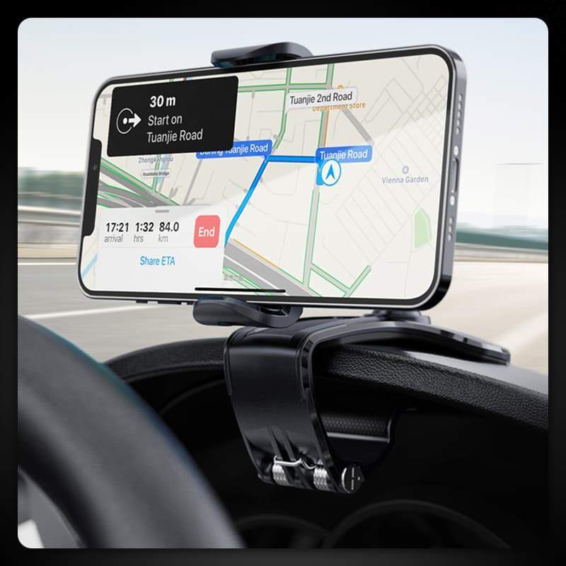Ten uchwyt na telefon posiada mocny, antypoślizgowy klips, dzięki któremu bezpiecznie przymocujesz swoje urządzenie do deski rozdzielczej, osłony przeciwsłonecznej, a nawet przedniego lusterka.
